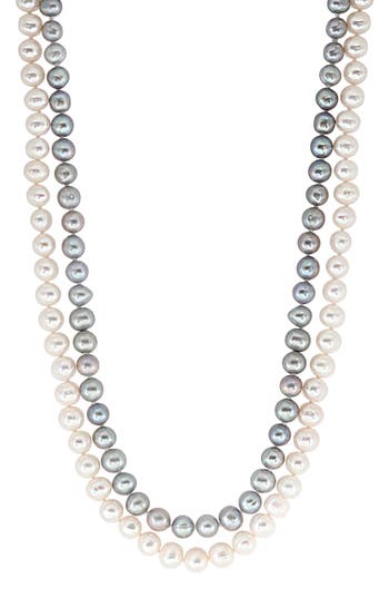 Sterling Silver Freshwater Pearl Double Strand Bracelet In Metallic