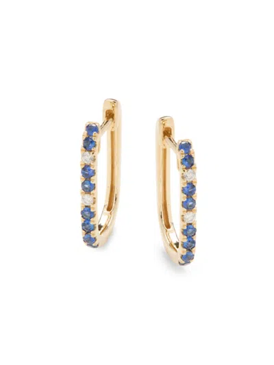 Women's 14k Yellow Gold, Sapphire & Diamond Hoop Earrings
