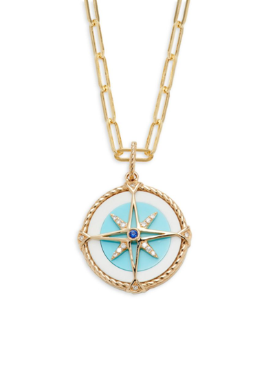 Women's 14k Yellow Gold, Turquoise, White Agate, Sapphire & Diamond Pendant Necklace