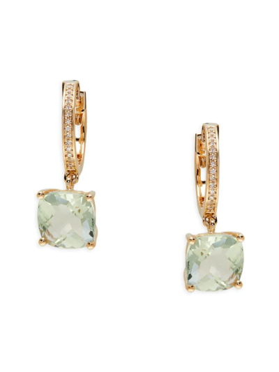 Women's 14k Yellow Gold, Diamond & Green Amethyst Dangle Earrings