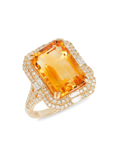 Women's 14k Yellow Gold, Citrine & Diamonds Ring