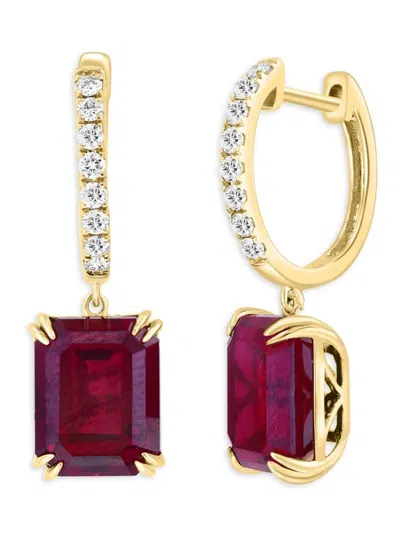 Women's 14k Rose Gold, Lab Gown Ruby & Lab Grown Diamond Huggie Drop Earrings