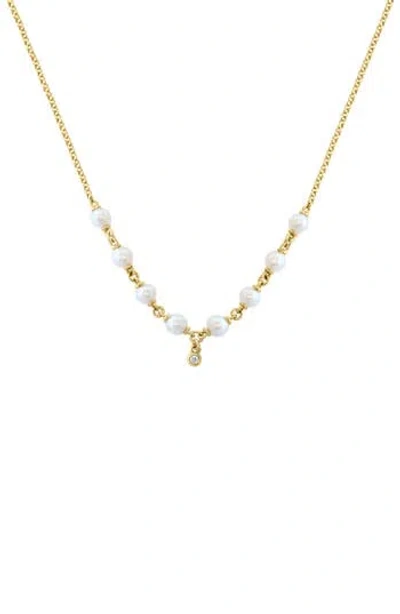 Diamond & Freshwater Pearl Station Necklace In Gold