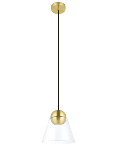 Cerasella 1 Light Mini Pendant With Brushed Brass Finish & Clear Cone Glass Shade In Black
