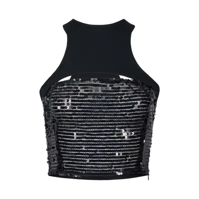 Women's Black Cropped Sequin Tank Top
