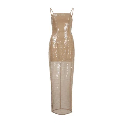 Women's Neutrals Beige Spaghetti Long Sequin Dress In Sand