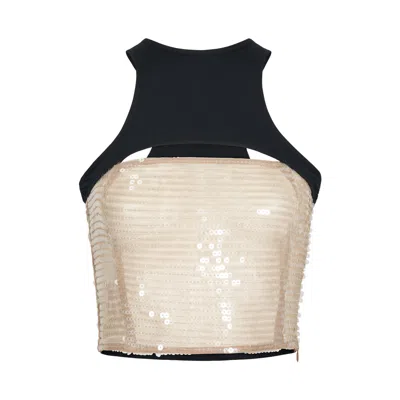 Women's Neutrals / Black Beige Black Cropped Sequin Tank Top