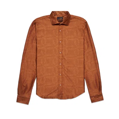 Men's Brown Sicily Crochet Long Sleeve Button Down Shirt