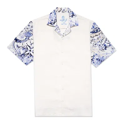 Men's Blue / White Azure Tapestry Short Sleeve Shirt + Shorts Matching Set