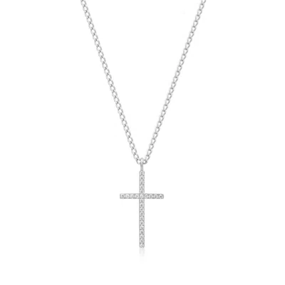 Women's Cz Cross Pendant Necklace In Rhodium Plated Sterling Silver In Metallic