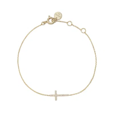 Women's Horizontal Cubic Zirconia Cross Bracelet In 14k Gold Plated Sterling Silver