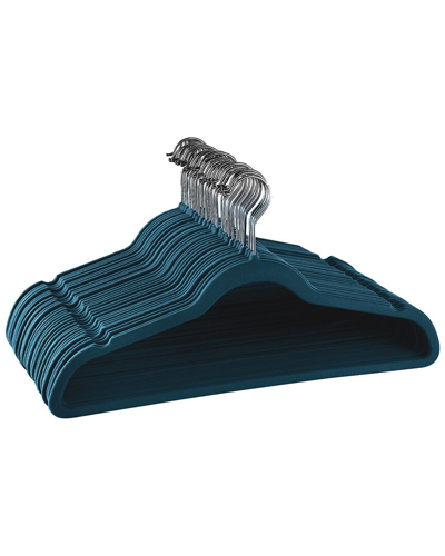 50pc Flocked Velvet Clothes Hangers With Swivel Hooks In Blue