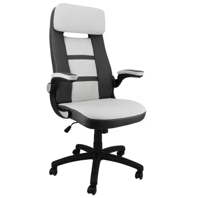 High Back Adjustable Faux Leather And Fabric Office Chair In Dark Gray And Light Gray In White