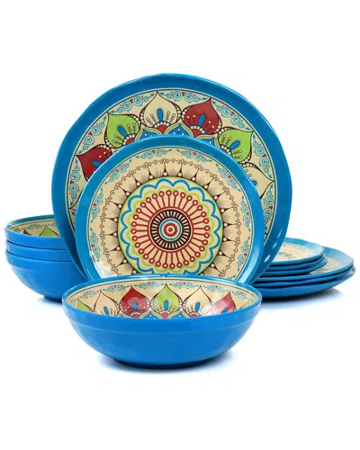 Mandala Micaela Melamine 12 Pc. Dinnerware Set, Service For 4 In Blue