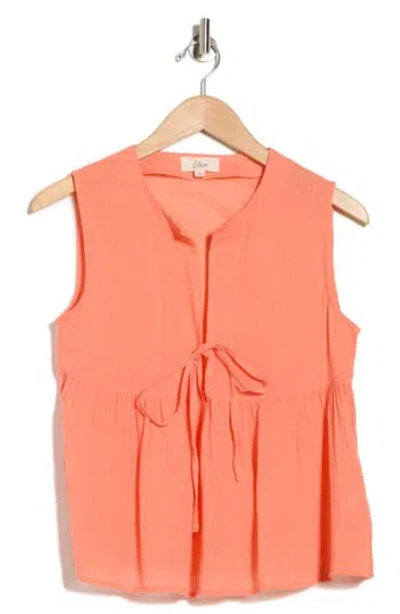 Sleeveless Cropped Button Up Tie Top In Coral In Pink