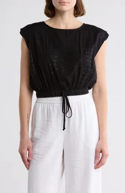 Metallic Drawstring Hem Cover-up Tank In Black