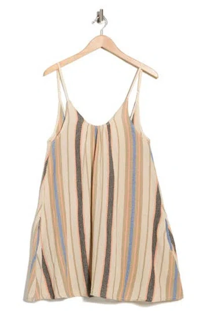 Tie Strap Mini Swim Cover-up Dress In White Pink Stripe