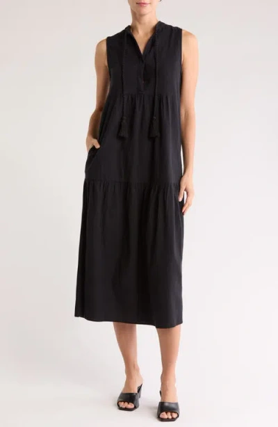 Tiered Cotton & Linen Cover-up Dress In Black