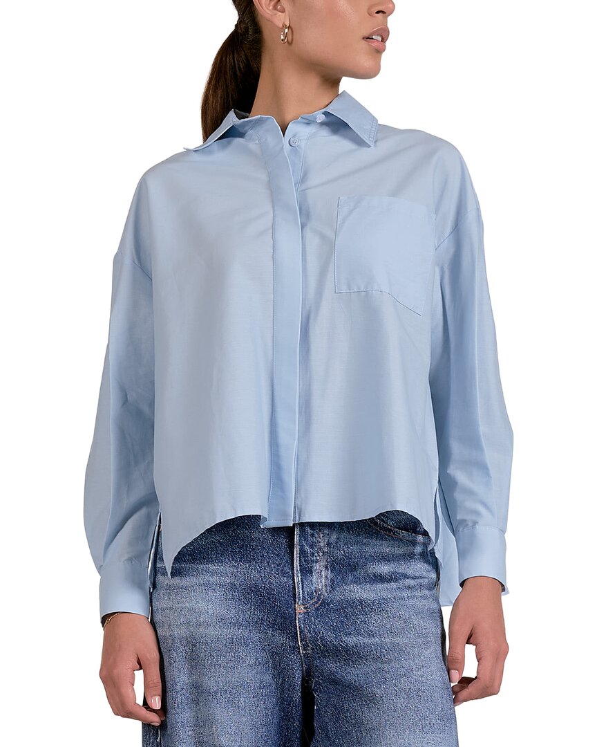 Short Sleeve Faux Wrap Cover-up Crop Top In Blue