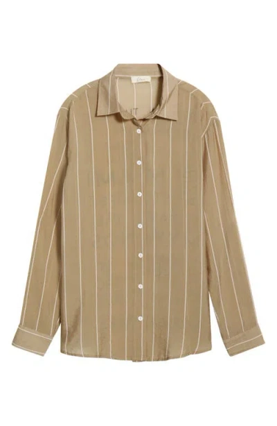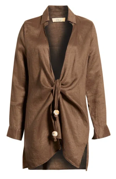 Tie Front Long Sleeve Linen Cover-up In Brown
