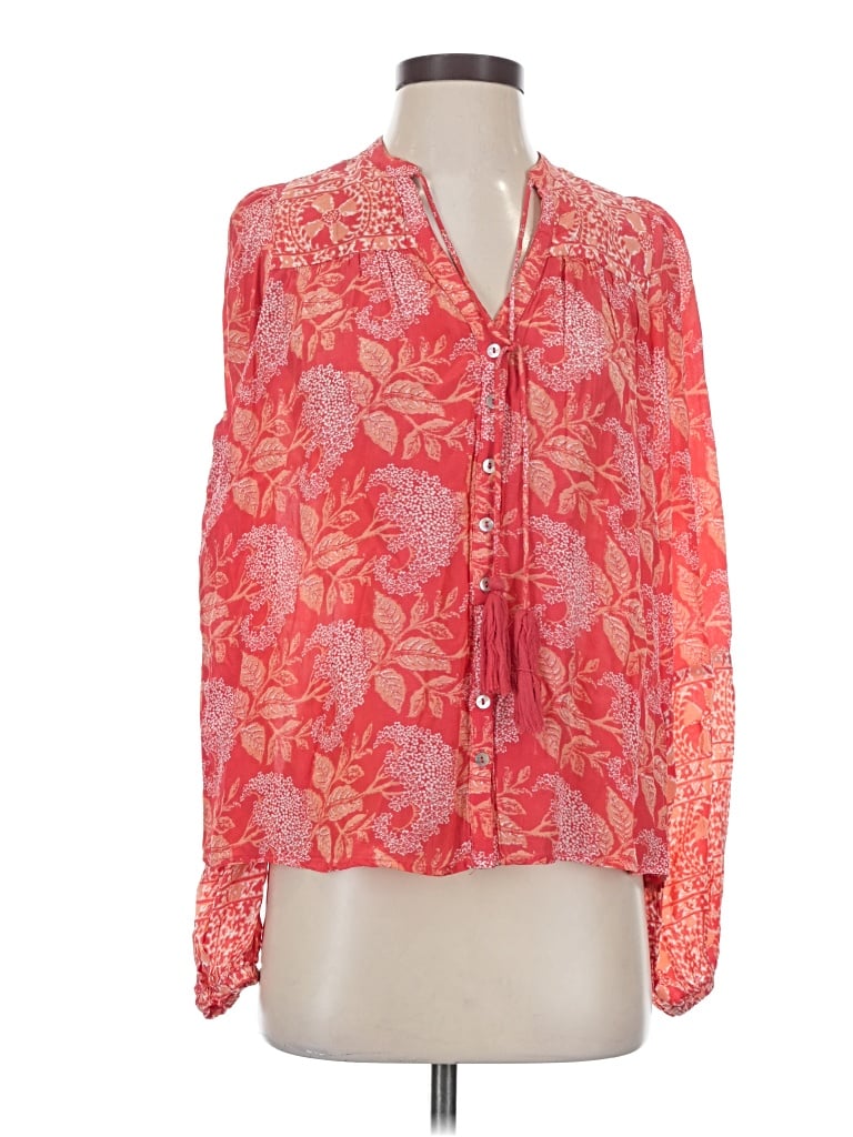 Pre-owned Short Sleeve Top Orange Keyhole Neckline Tops