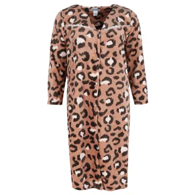 Women's Leopard Snap Front Long Sleeve Duster In Brown