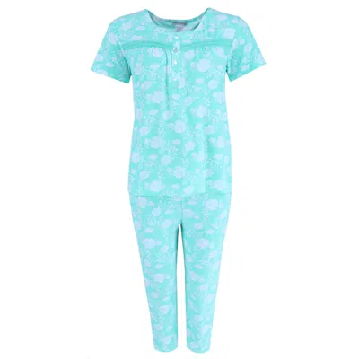 Women's Mint Floral Capri Set In Green