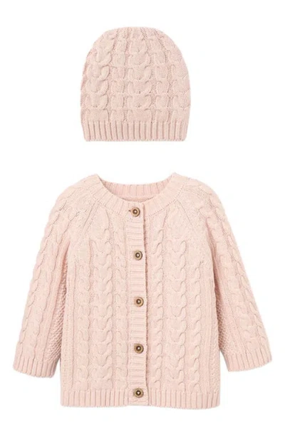 Kids' Horseshoe Cable Knit Cotton Cardigan & Hat Set In Pink