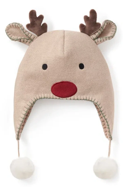 Kids' Reindeer Faux Fur Lined Aviator Hat In Brown