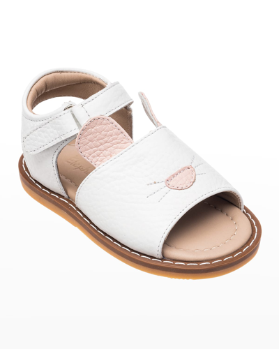 Girl's Bunny Leather Flat Sandals, Baby In White