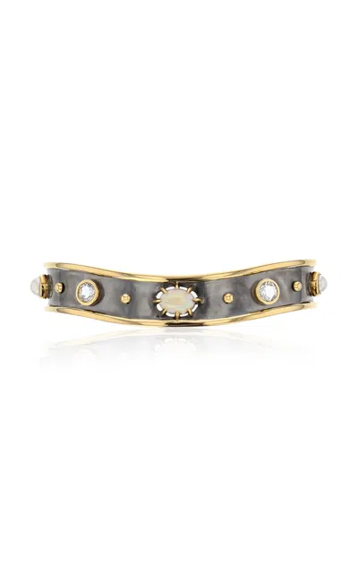 Bandeau 18k Yellow Gold; Distressed Silver Opal Cuff In Multi