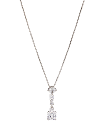 Rhodium-plated Pear-shape Cubic Zirconia Lariat Necklace, 16" + 2" Extender, Created For Macy's
