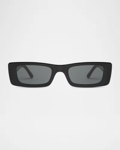 Flynn Glossy Acetate Rectangle Sunglasses In Black