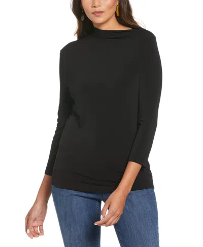 Petite Draped Knit 3/4 Sleeve Top In Black