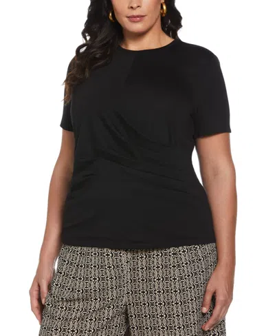 Plus Size Asymmetrical Wrap Short Sleeve Top In Black