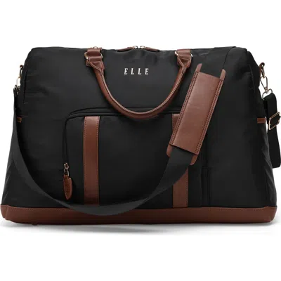 Luxe Journey 30l Twill And Vegan Leather Weekender Duffel Bag In Black