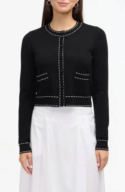 Contrast Trim Sweater Knit Cardigan In Black