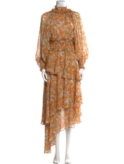 Pre-owned Floral Print Long Dress In Orange