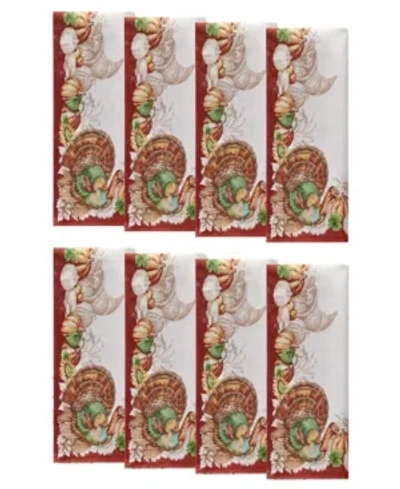 Holiday Turkey Bordered Fall Napkins, Set Of 8 In Multi