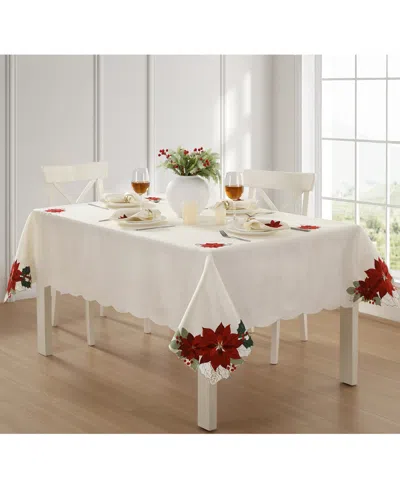 Poinsettia Cutwork Fabric Tablecloth, 60" X 84" In White