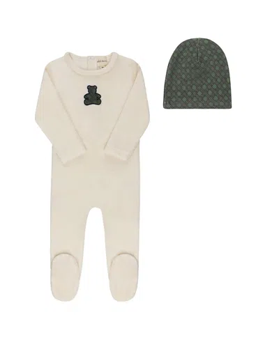 Unisex Velour Plaid Bear Collection Footie + Beanie - Baby In Neutral