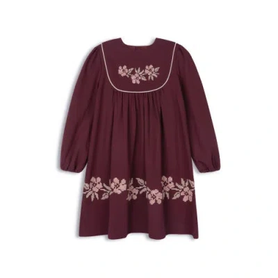 Kids' Looms Stitch Embroidered Wool Dress In Brown