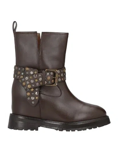 Woman Ankle Boots Dark Brown Size 8 Leather, Textile Fibers