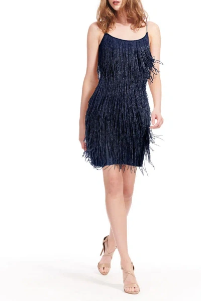 Sleeveless Beaded Fringe Mini Dress In Navy In Blue