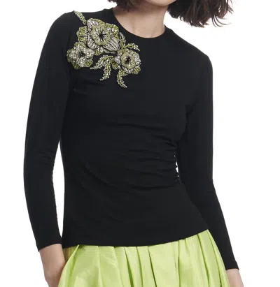 Feather Shoulder Luxe Jersey Top In Black