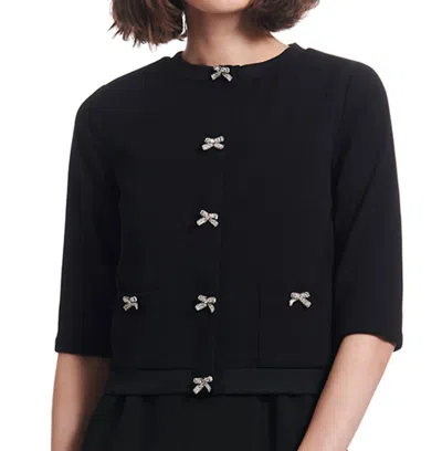 Bow Button Knit Jacket In Black In Blue
