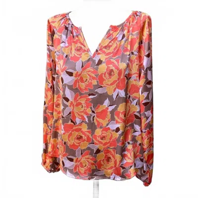 Women Split Neck Long Sleeve Pullover Top In Floral In Multi