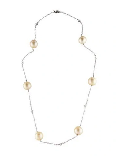Pre-owned 18k Pearl & Diamond Station Necklace, 20" In Multi