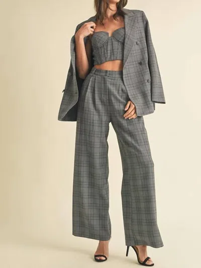 Plaid Pattern Double Breasted Blazer In Gray In Grey