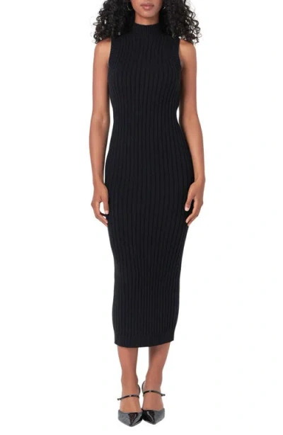 Mock Neck Rib Sweater Dress In Black